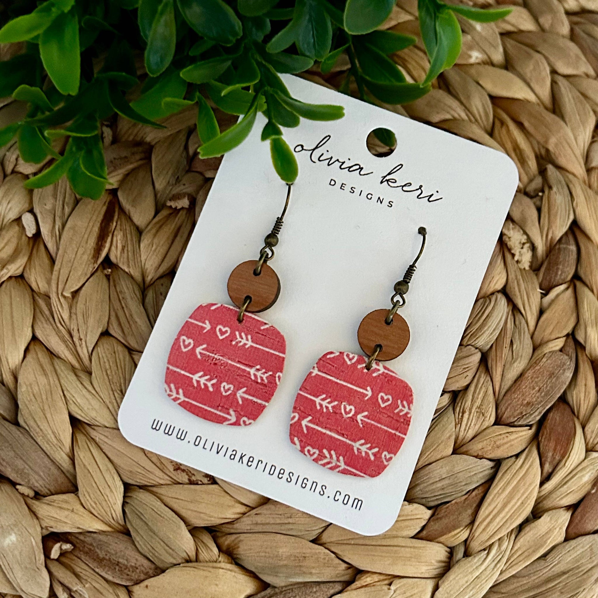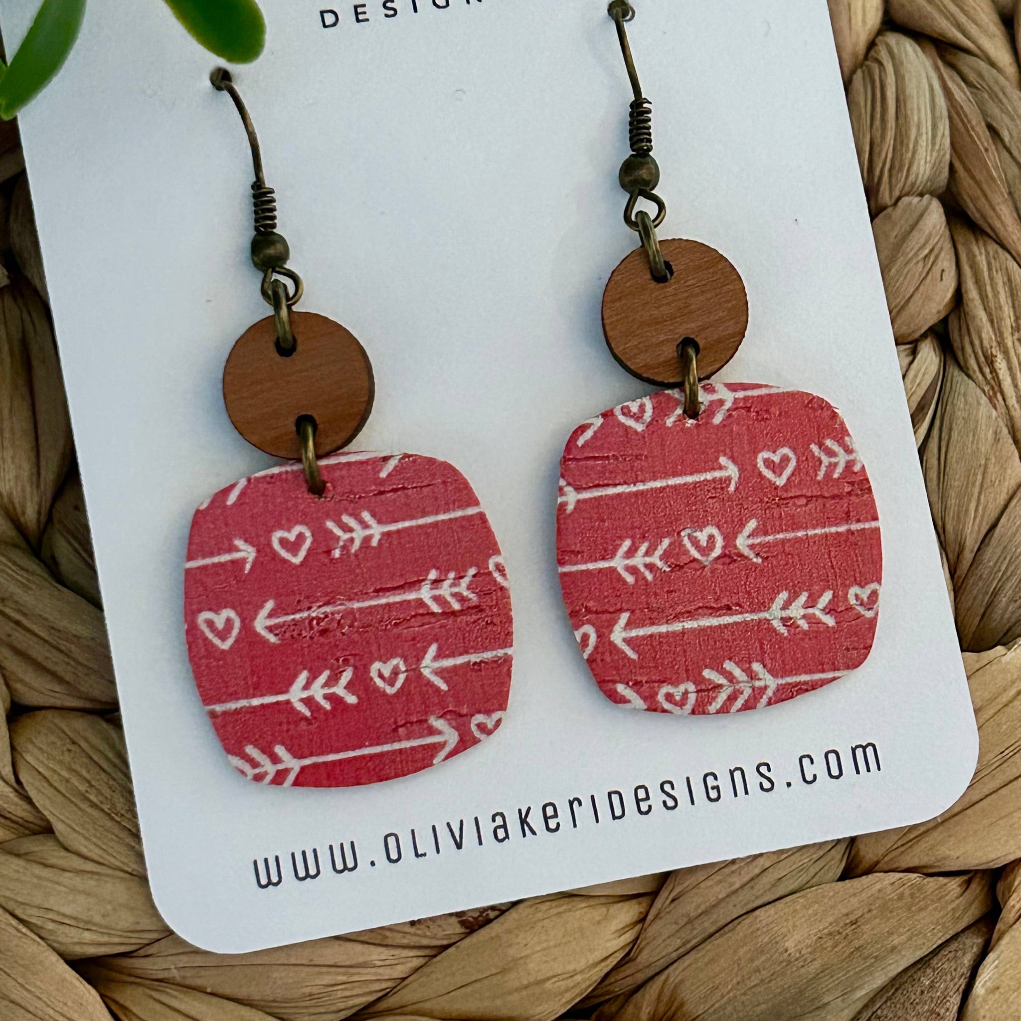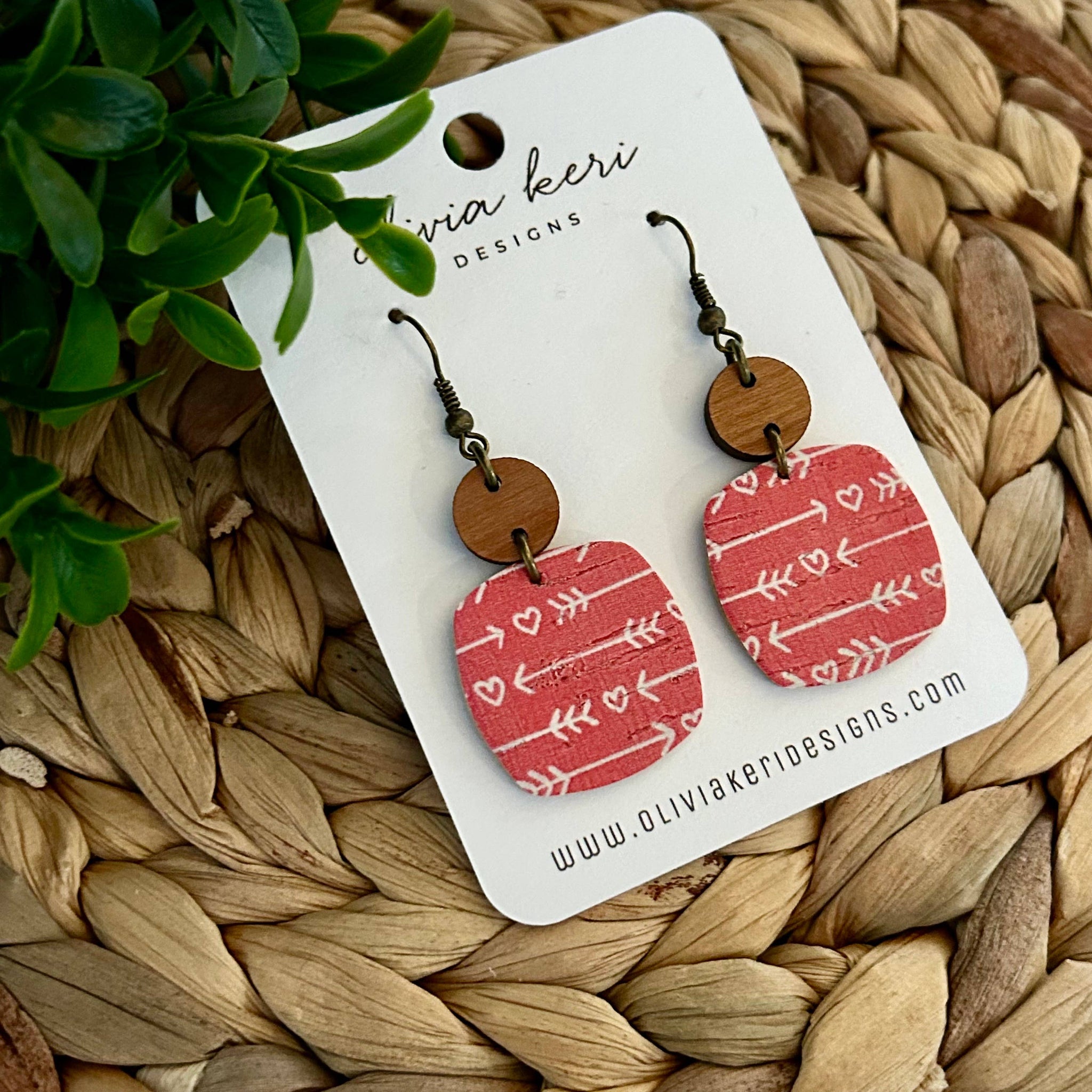 Beautiful cork on leather earrings with a wood accent. So lightweight and gorgeous!
