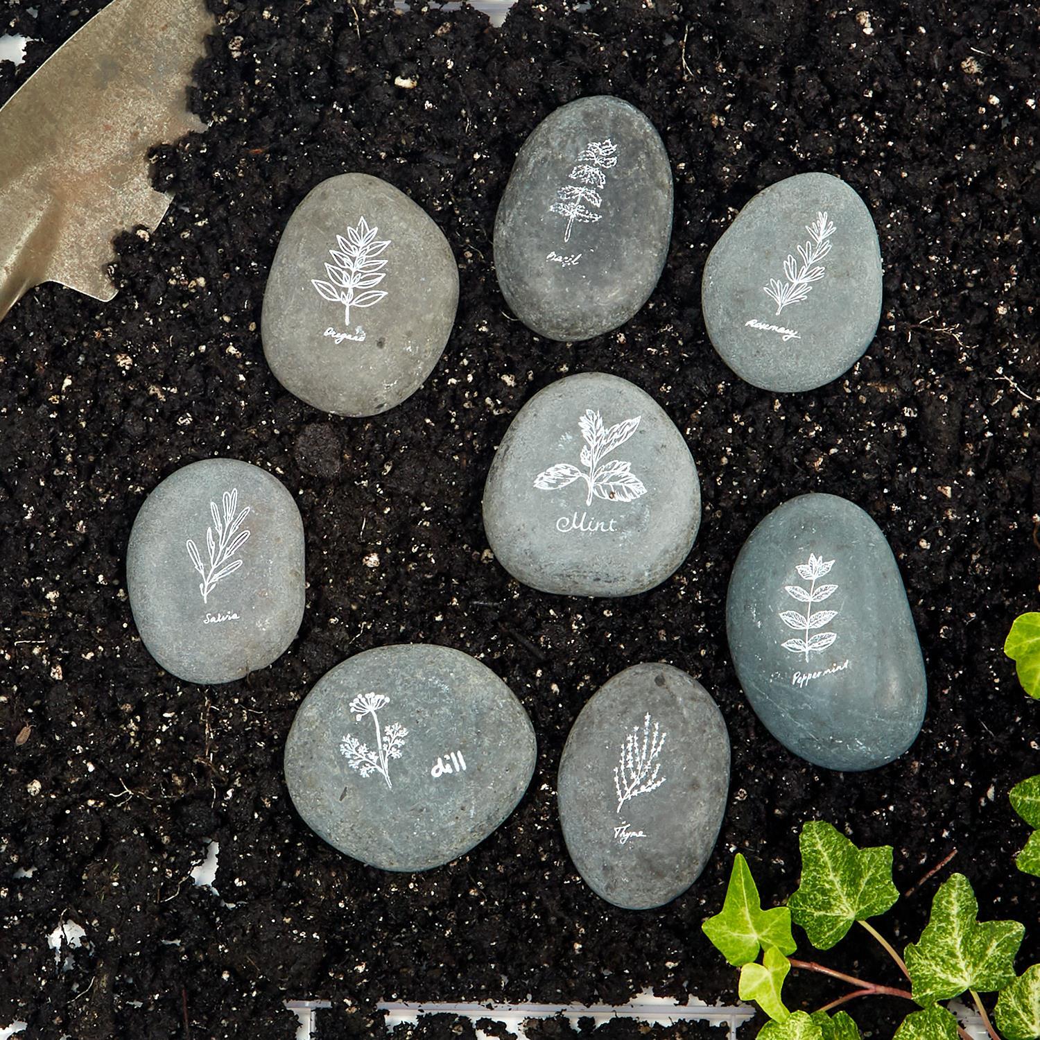 Set in Stone - Stone Herb Markers 6 Designs: Thyme, Mint, Peppermint, Basil, Rosemary, Oregano - Natural Stone