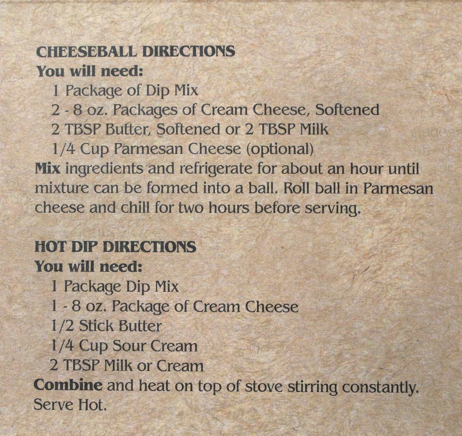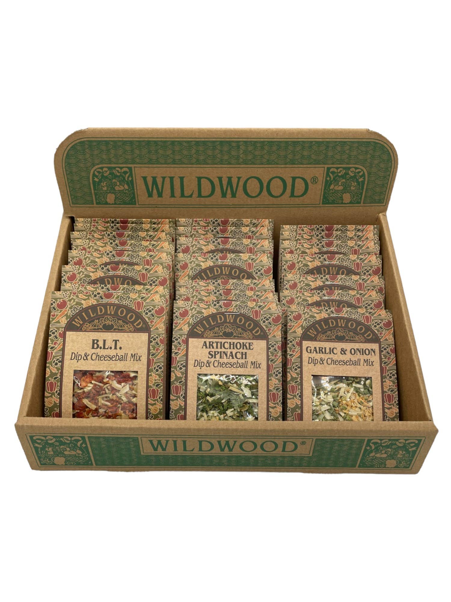 These delicious dip mixes come in 3 flavors and make the perfect gift for the hostess. Mix Wildwood dip mix with sour cream and Mayo(or cream cheese) together thoroughly. Best flavor after 3 hours of refrigeration. Great with chips, crackers, pretzels and veggies! Artichoke Spinach, Garlic & Onion or BLT