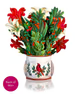 A wintery windowsill garden, thoughtful stocking stuffer, or a simple holiday hello... Frosty white and velvet red lilies paired with sprigs of holly and boxwood, festively displayed in a porcelain vase and complete with a charming cardinal motif. Includes matching note card.